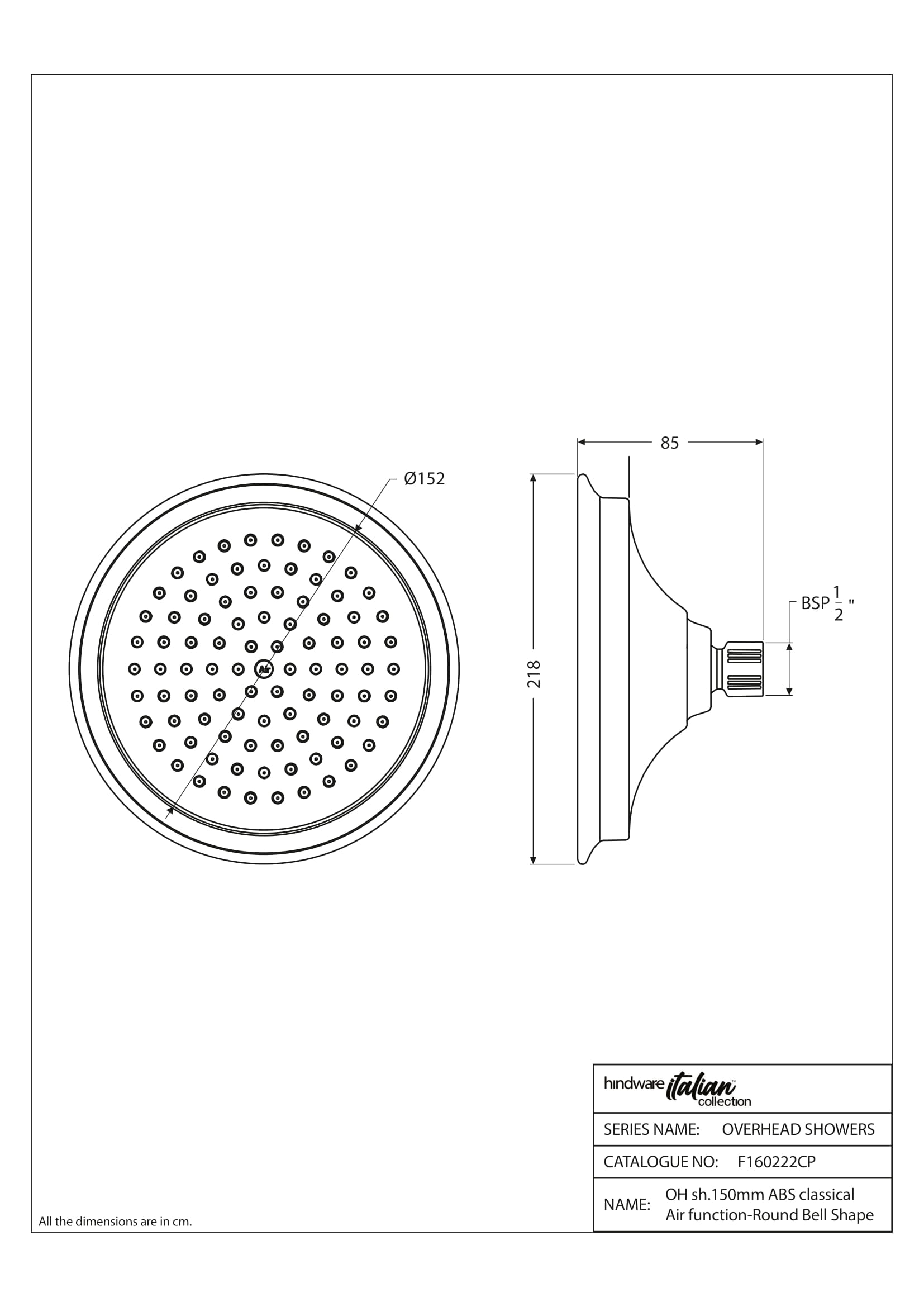 | Product | Hindware overhead shower 150mm round bell shape ABS classical air function , (F160222) |